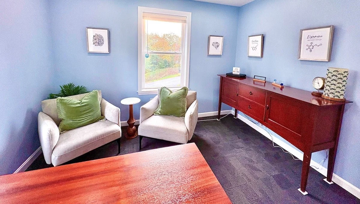 Comfortable treatment room at Resilient Mind Mental Health, a NH health mental center
